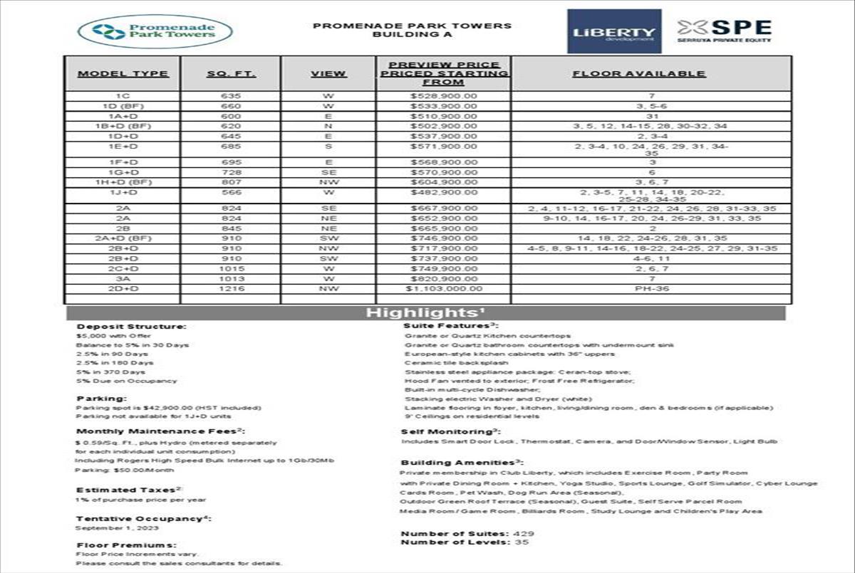 Promenade Park Condos Highlights: